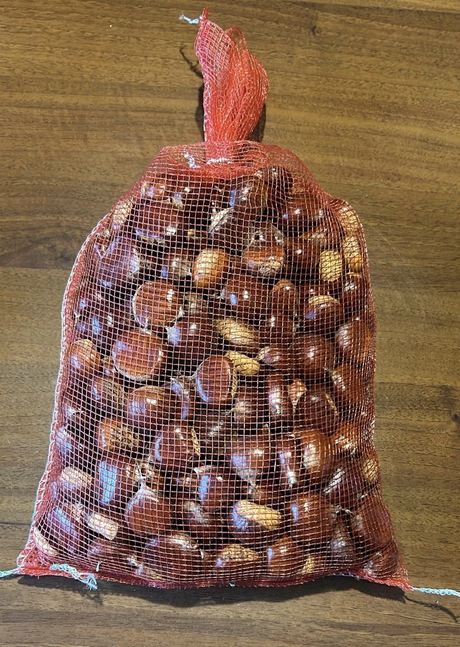 Castagne di medie dimensioni. PESO NETTO DEL SACCHETTO: 4 CHILI E 700 GRAMMI.