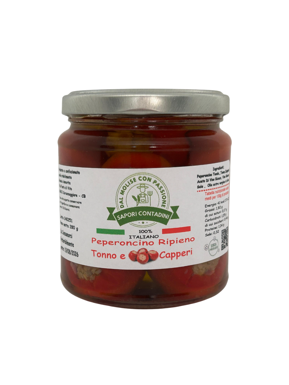 Ingredienti: Peperoncino Tondo, Capperi, Tonno, Aceto di Vino Bianco, Vino Bianco, Olio Extravergine Oliva, Sale.